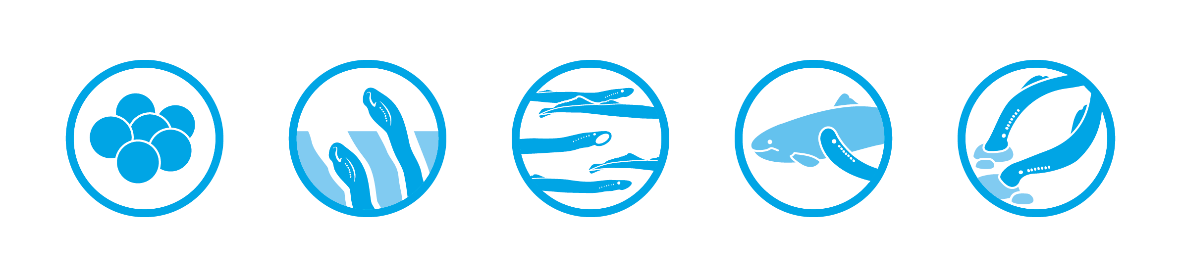 Interior space with GLFC logo & 3D fish on dark blue wall