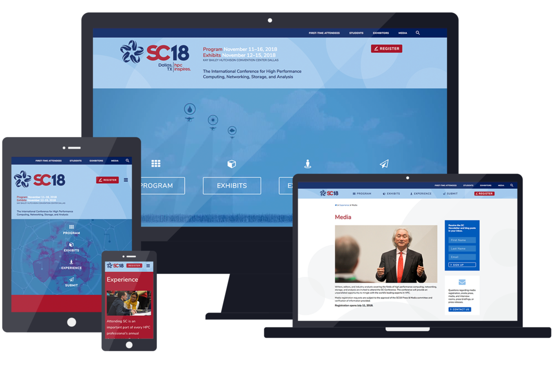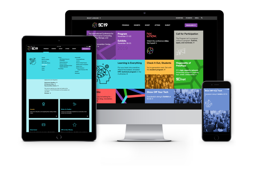 Established in 1988 by the Association for Computing Machinery (ACM) and the IEEE Computer Society, SC (formerly Supercomputing) is the annual International Conference for High Performance Computing, Networking, Storage, and Analysis. Since 2018, Q LTD has worked closely with the SC conference committee and develops a new identity and website for each year’s conference. The look and feel is then extended to a wide variety of marketing materials and convention center graphics. For SC20, a first-ever all-virtual event was held, with over 600 hours of content available. 7,440 visitors from over 115 countries attended the conference. SC23 in Denver drew over 14,000 attendees and SC24 in Atlanta reached over 18,000 attendees!
